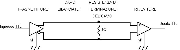 La resistenza di terminazione Rt è opzionale e di valore coincidente con l'impedenza caratteristica del cavo al fine di impedire fenomeni di riflessioni.