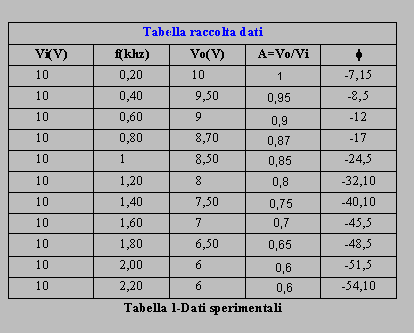 Osservando la tabella del filtro passa-basso (R-C), si e' avuto il seguente risultato: