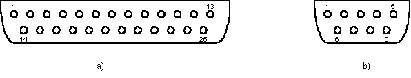 Connettore per la RS-232C: a) di tipo a 25 poli; b) di tipo a 9 poli.