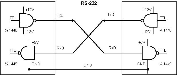 Per trasformare un livello logico TTL in RS-232 compatibile occorre un traslatore di livello in modo che il valore di tensione compreso tra +2V e +5V ( 1 logico TTL ) si trasformi in -12V mentre un valore di tensione compreso tra 0 e 0.8V (0 logico TTL) si trasformi in +12V.
